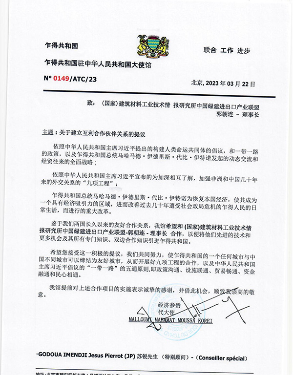 乍得共和國大使館與情報(bào)研究所中國綠建郭朝連理事長合作 相關(guān)推薦